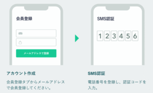 - 電話番号を入力してSMSに送信された6桁の認証コードを入力