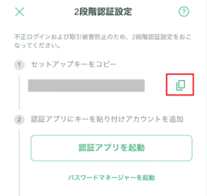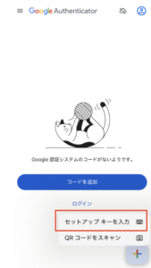 表示された項目の中から「セットアップキーを入力」をタップします。
