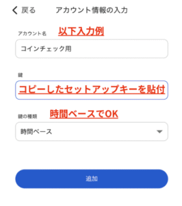 コインチェックのアプリに戻り「6桁の認証コードを入力」