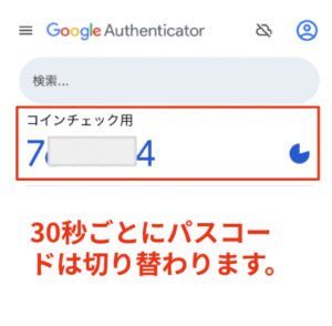 (青丸のアイコンがパスコードが切り替わるまでの時間を表しています)
