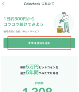 移動した先の画面で、「まずは通貨を選択」をタップ。