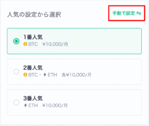 決めた金額の暗号資産を自動で積み立てできるサービスです。