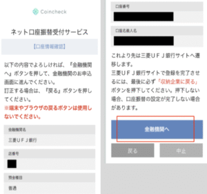 内容に問題がないか確認し「金融機関へ」をタップします。