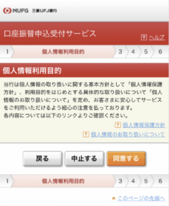 選択された金融機関側のサイトが表示される(具体例:三菱UFJ銀行)ので、